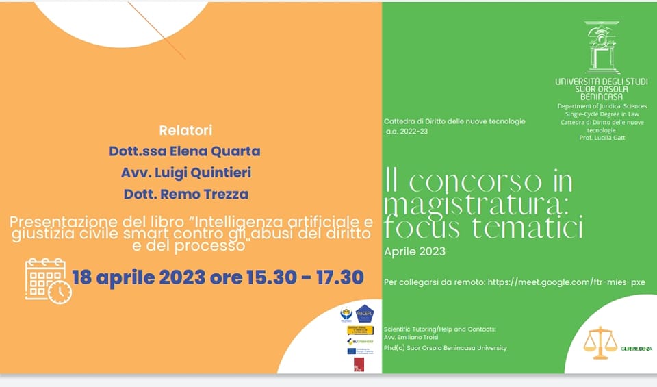 L’ Avv. Quintieri è stato invitato come relatore, unitamente alla Prof.ssa Quarta ed il Dott. Trezza ad un ciclo di lezioni organizzate dall’ Università Suor Orsola Benincasa di Napoli, per la preparazione al Concorso in Magistratura.