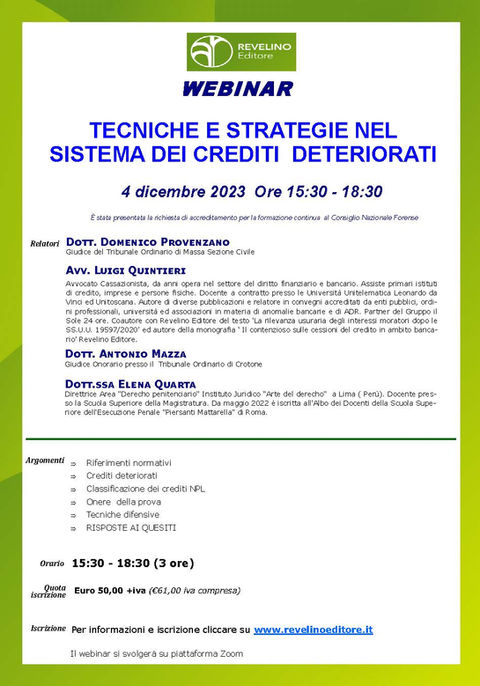 04.12.2023 Quintieri docente corso sulle cessioni dei crediti, accreditato CNF.
